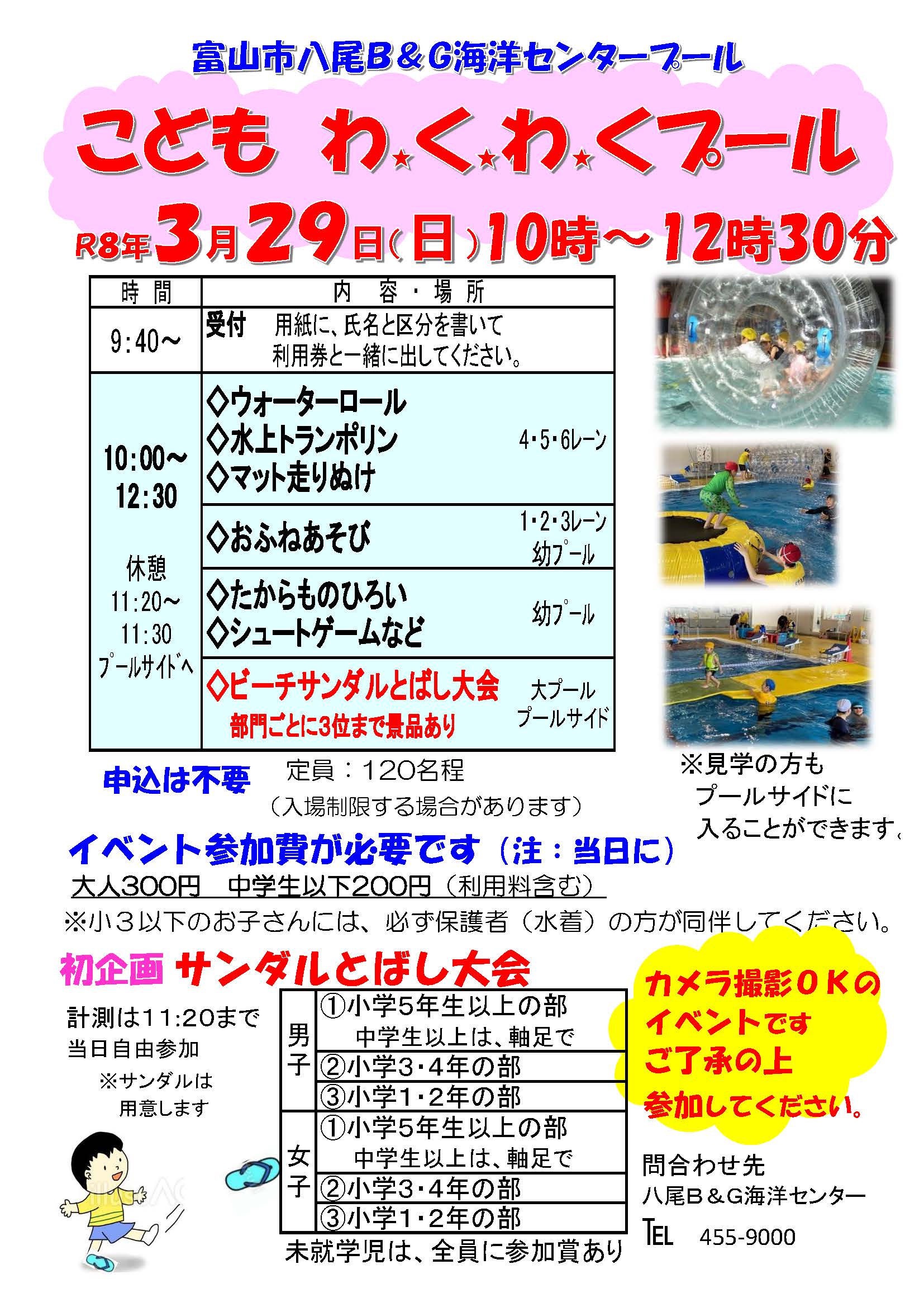 | 施設名 | 富山市八尾B&G海洋センタープール |